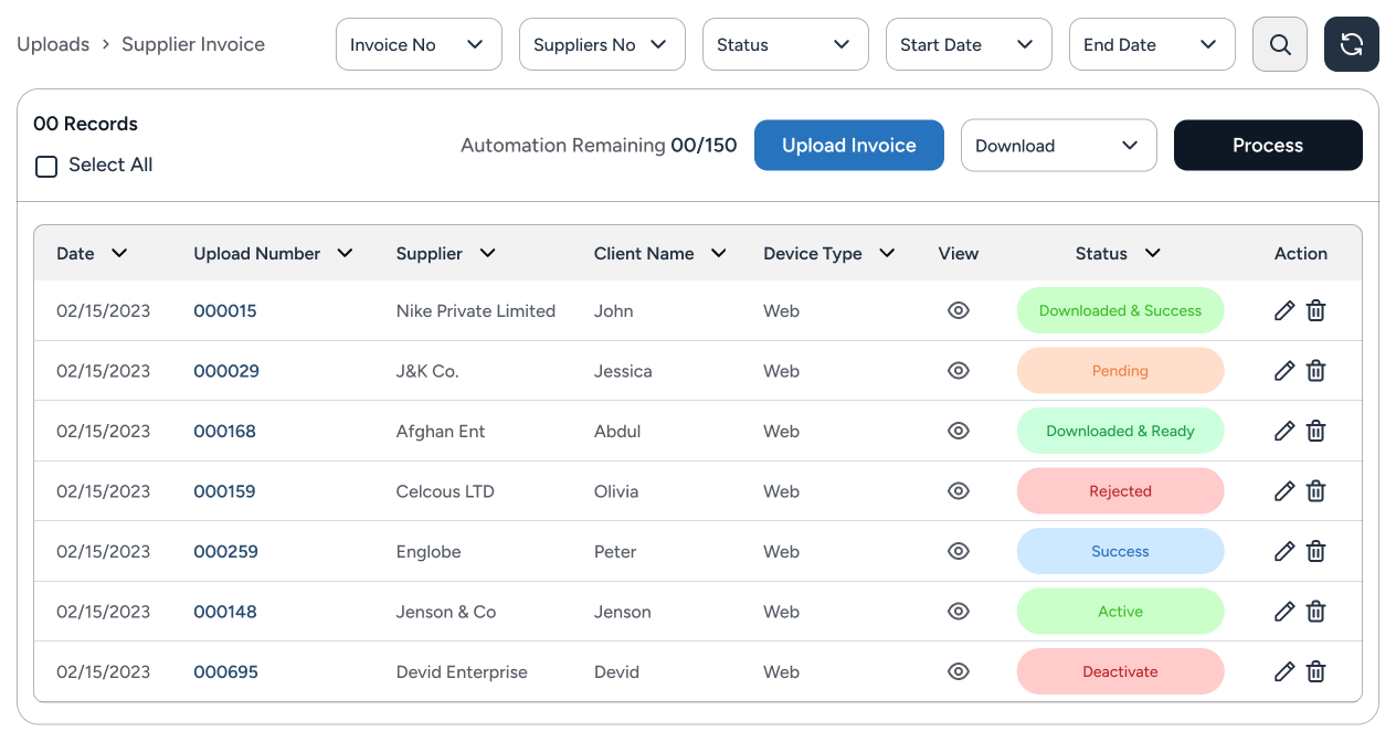 - The suppliers’ names, amounts, invoice numbers and dates are then extracted